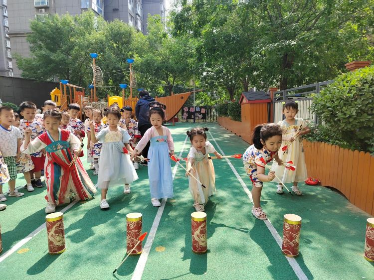 作為古代士大夫宴飲時(shí)的一種游戲,投壺有防害防病的寓意,象征健康、平安。幼兒在投壺游戲中躍躍欲試,爭(zhēng)當(dāng)最佳投手。