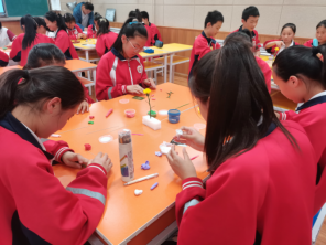 4.泥塑課。科技工業(yè)學(xué)校王雯艷、李宏志老師到化建中學(xué)授課內(nèi)容為《讓瞬間變成永恒——手工捏塑凝結(jié)歲月光華》,通過對美術(shù)的概念和門類、手工捏塑的特點和基礎(chǔ)技法的講解,手工捏塑作品的欣賞,使學(xué)生初步掌握了捏塑的制作方法,增進(jìn)了學(xué)生對捏塑藝術(shù)的認(rèn)識和興趣。8中的老師興奮地說:學(xué)生們在聽課中了解了美術(shù)的知識,學(xué)習(xí)超輕粘土的特性,學(xué)習(xí)康乃馨的不同制作方法,學(xué)生們認(rèn)真制作,并把制作的康乃馨送給母親,表達(dá)對媽媽的愛意,整個課堂中學(xué)生興致高昂。