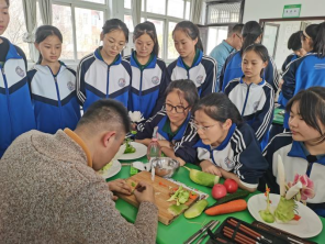 5.冷拼課。文化旅游學(xué)校任志剛老師到13中講解冷拼雕刻。任老師用一把小小的雕刻刀在短短的幾分鐘內(nèi)將普通的蘿卜雕刻成了盛開的荷花、牡丹、展翅欲飛的小天鵝,刀起刀落,盡顯精湛技藝,孩子們滿懷新奇,躍躍欲試,冷拼雕刻課上閆中慧老師講解得認(rèn)真細(xì)致,同學(xué)們學(xué)習(xí)得聚精會神;高笛老師的插花課更是一種美的體驗和感受,引導(dǎo)學(xué)生在學(xué)中做、在做中學(xué),了解各類鮮花花型,每種插花表達(dá)的思想意境,最后每個同學(xué)在老師的指導(dǎo)下、在自己的努力下完成了一個自己的作品。孩子們很有成就感,回班級后還收到來自同學(xué)們贊羨的眼光。