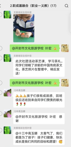 課程不僅僅是生活教育,更是德育。恰逢5月14日母親節(jié)即將到來,為讓學(xué)生們學(xué)會感謝母親、感激生命、感恩生活,授課老師認(rèn)真準(zhǔn)備,茶藝課巧妙設(shè)計了一場親子茶會,插花活動則教同學(xué)們?yōu)榕駤寢屩谱髅利惖幕ㄊ<寄苷n程豐富了學(xué)生的學(xué)習(xí)課堂,提升了學(xué)生的學(xué)習(xí)積極性,增強學(xué)生的動手能力,既是勞動教育,也是德育,增強了學(xué)生們對美好事物的向往。以愛之名,致敬母親。初中的老師很感謝職校老師給孩子和媽媽們帶來愛的體驗,真實感受到職業(yè)教育的教學(xué)立足新時代、面向新征程,弘揚勞動教育、技能教育,職業(yè)魅力高大。