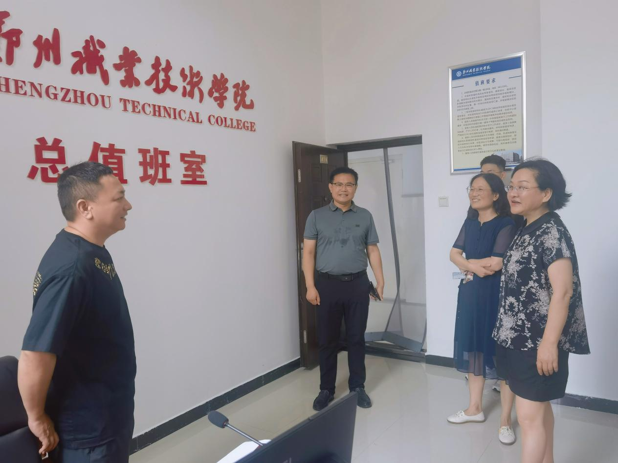 7月14日上午,鄭州職業(yè)技術學院黨委書記呂村深入校園全面檢查學校防汛準備工作及假期值班情況。黨政辦公室、后勤保障處、安全保衛(wèi)中心、學生處等部門負責人以及當天值班組長陪同參加檢查工作。