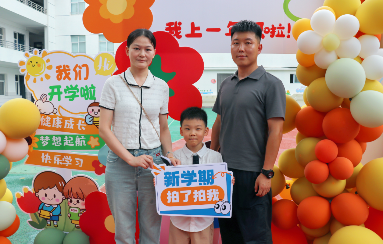 學(xué)校活力寶貝啦啦操社團在校門廳歡迎新生及家長,少年先鋒管樂團的學(xué)生為大家?guī)砑で轱w揚的演奏盛宴,營造溫馨的開學(xué)氛圍。小朋友們在父母的陪伴下步入紅毯,在主背景前合影留念。“咔嚓”一聲,時間在此定格,為孩子們留下了新路程的照片,相信入學(xué)時的場景將會成為孩子們一生的珍貴回憶。在入學(xué)儀式之后,孩子們將正式跨入小學(xué)的大門,成為一名小學(xué)生了!
