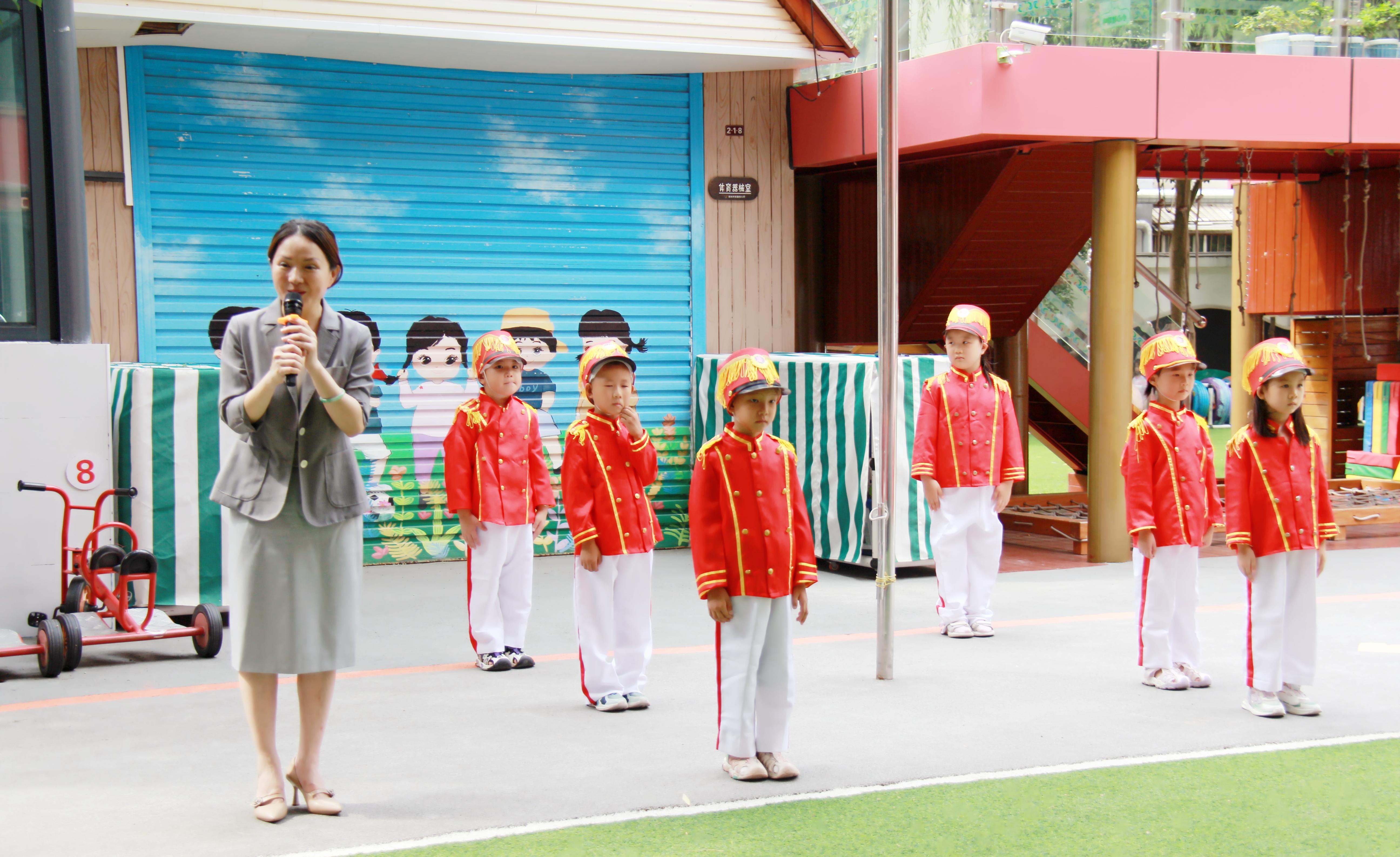鄭州市實驗幼兒園黨總支書記、園長張莉在國旗下寄語孩子們:“祝愿小朋友們像花兒一樣,迎著燦爛的陽光茁壯成長,在幼兒園里自在探索、快樂游戲、收獲滿滿。” 全體小朋友齊唱《童心向黨》《國旗紅紅的哩》,用稚嫩的聲音為祖國歌唱。