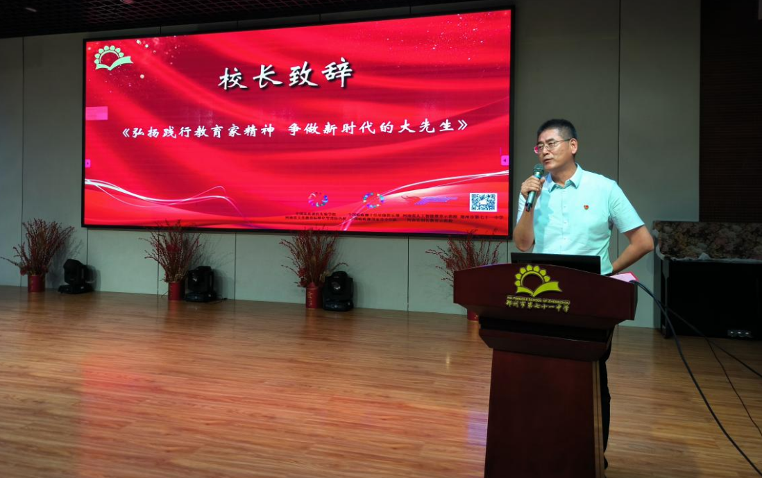 2024年9月10日,鄭州市第七十一中學開展了“大力弘揚教育家精神,加快建設(shè)教育強國”暨第40個教師節(jié)慶祝活動。弘揚教育家精神,激勵引導(dǎo)廣大師生崇德尚美、敬業(yè)立學,加快建設(shè)教育強國。