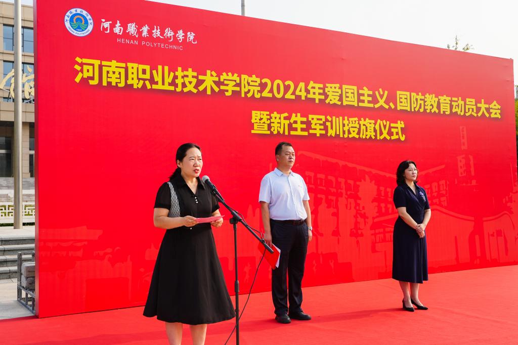 9月9日上午,河南職業(yè)技術(shù)學(xué)院2024年“愛國主義、國防教育”動(dòng)員大會(huì)暨新生軍訓(xùn)授旗儀式在明湖廣場舉行。校長夏新顏,校黨委副書記、工會(huì)主席田華出席儀式。各二級(jí)學(xué)院黨總支書記、副書記,全體軍訓(xùn)教官和部分新生代表參加儀式。