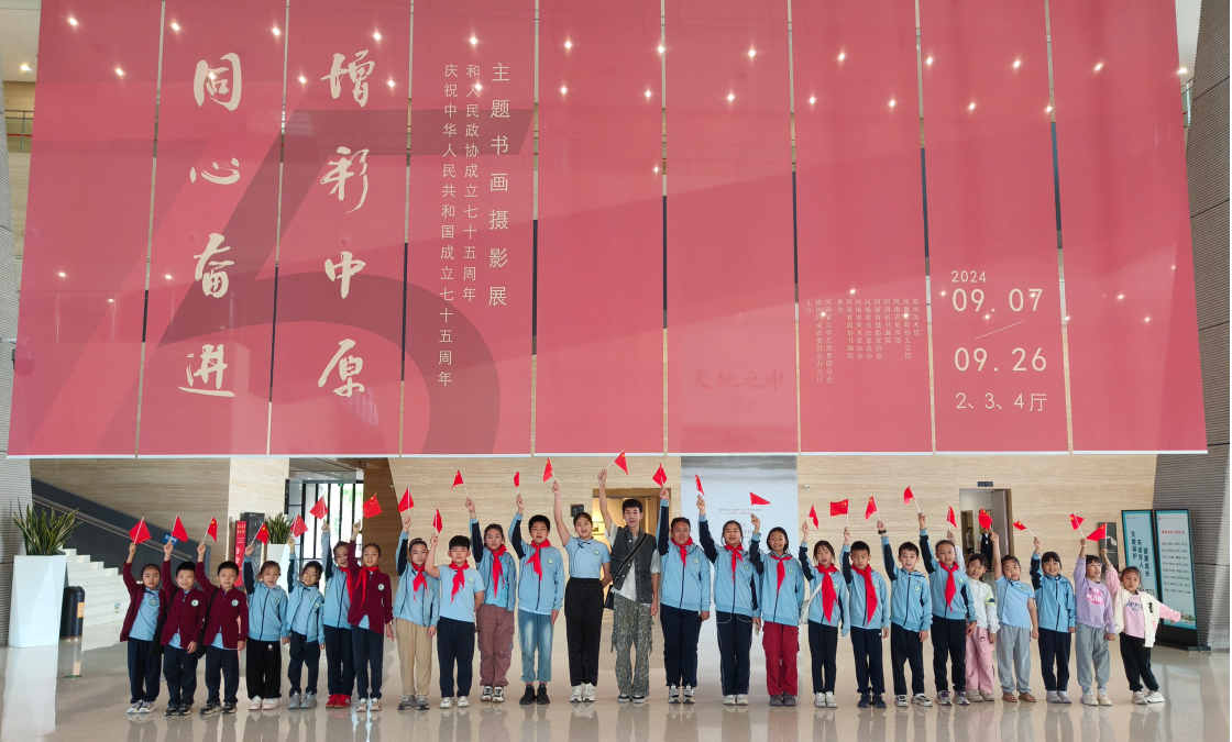 在中華人民共和國成立75周年的輝煌時刻,鄭州市金水區(qū)沙口路小學翰墨蘭軒國畫社的學子們滿懷熱忱,踏入鄭州美術館,開啟了“同心奮進,增彩中原”的藝術之旅。