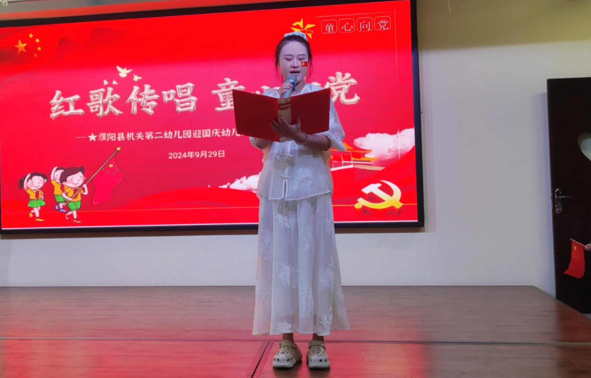 為慶祝中華人民共和國(guó)成立75周年,9月29日上午,濮陽(yáng)縣機(jī)關(guān)第二幼兒園舉行“紅歌傳唱 童心向黨”迎國(guó)慶紅歌傳唱活動(dòng)。孩子們用歌聲唱響童年,用激情贊美祖國(guó)!