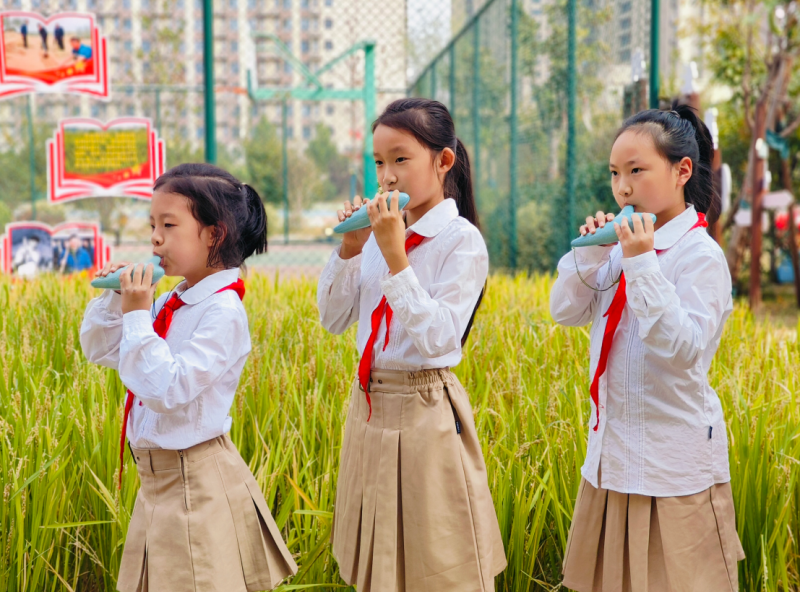 悠揚陶笛聲響起,金水區(qū)農(nóng)科路小學國基校區(qū)的師生以陶笛演奏《日光稻香》,淳樸舒緩的節(jié)奏讓人腦海中不禁浮現(xiàn)出一幅美好的豐收風光——嘉禾園里,陣陣稻香襲來,馥郁芬香。