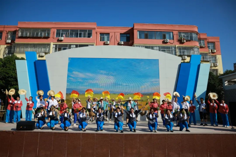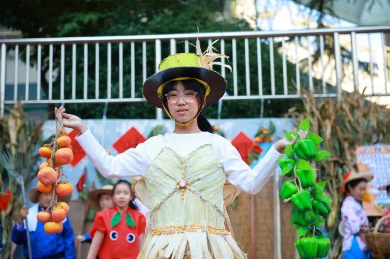 “望稻浪翻滾,映照勤勞的身影;聽(tīng)笑語(yǔ)連連,奏響豐收的樂(lè)章”。在激情澎湃的開(kāi)場(chǎng)鑼鼓聲中,由該校師生自編自演的慶豐收文藝演出拉開(kāi)了帷幕。文藝演出共分為“喜迎豐登、耕耘頌歌、豐收贊歌、分享歡娛、展望未來(lái)”五個(gè)部分。孩子們身穿白紗裙,手持稻穗表演的歌舞《禾下乘涼夢(mèng)》讓人們淚目又驕傲。《豐收的樂(lè)章》《五谷豐登》《中國(guó)永遠(yuǎn)收獲著希望》等節(jié)目用歌聲、舞蹈與歡笑共同編織出了一幅幅豐收的畫(huà)卷,讓人們感受到了來(lái)自田野的喜悅與滿足。
