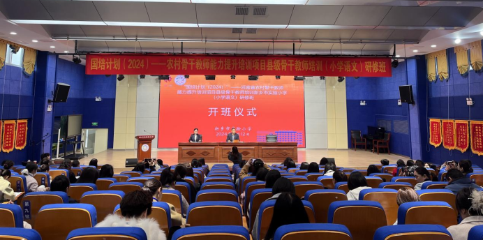 11月12日,“國(guó)培計(jì)劃(2024)”縣級(jí)骨干教師培訓(xùn)(小學(xué)語(yǔ)文)研修班在新鄉(xiāng)市實(shí)驗(yàn)小學(xué)開班。來自鄭州、洛陽(yáng)、周口等地市的百名骨干教師齊聚,踏上為期10天的能力提升之旅。新鄉(xiāng)市實(shí)驗(yàn)小學(xué)副校長(zhǎng)王華騰出席開班儀式。教科處副主任宋曲曉波主持開班儀式。