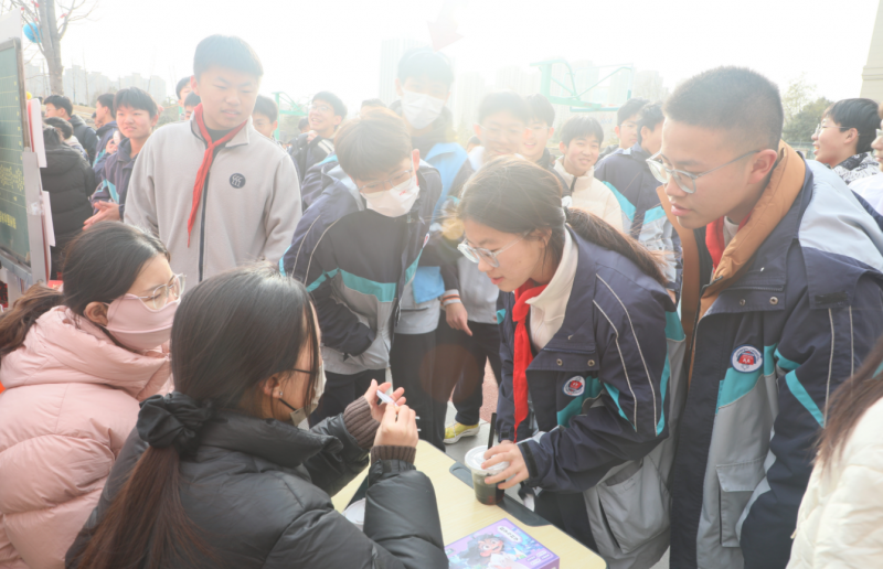 除了自由售賣活動(dòng),猜燈謎和知識(shí)能量競(jìng)賽也是本次易趣節(jié)的亮點(diǎn)。燈謎區(qū)前人頭攢動(dòng),學(xué)生們或低頭沉思,或相互討論,猜對(duì)謎底后的喜悅之情溢于言表。知識(shí)能量競(jìng)賽則考驗(yàn)了學(xué)生們的知識(shí)儲(chǔ)備和應(yīng)變能力,四個(gè)主題的知識(shí)競(jìng)賽輪番上演,學(xué)生們?cè)诩ち业谋荣愔姓宫F(xiàn)了自己的風(fēng)采。此外,學(xué)生們還在新年寄語(yǔ)展板上寫下了新年的祝福與愿望,共同期待著更加美好的未來(lái)。