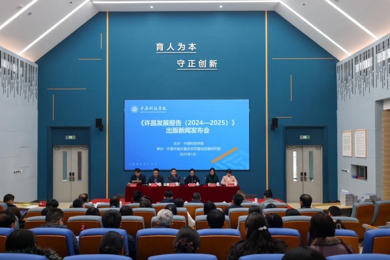 2025年1月5日下午,《許昌發(fā)展報(bào)告(2024—2025)》出版新聞發(fā)布會(huì)在中原科技學(xué)院許昌校區(qū)舉行。中原科技學(xué)院校長(zhǎng)、許昌藍(lán)皮書主編趙健出席會(huì)議并講話。
