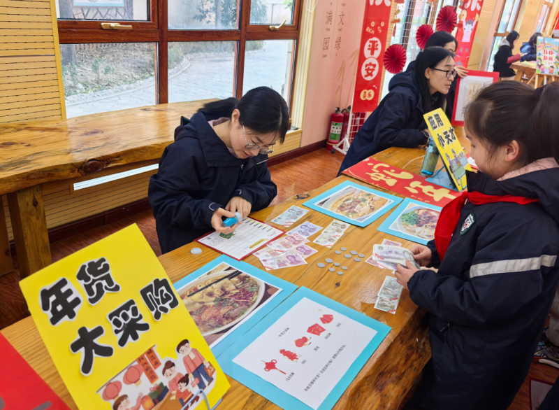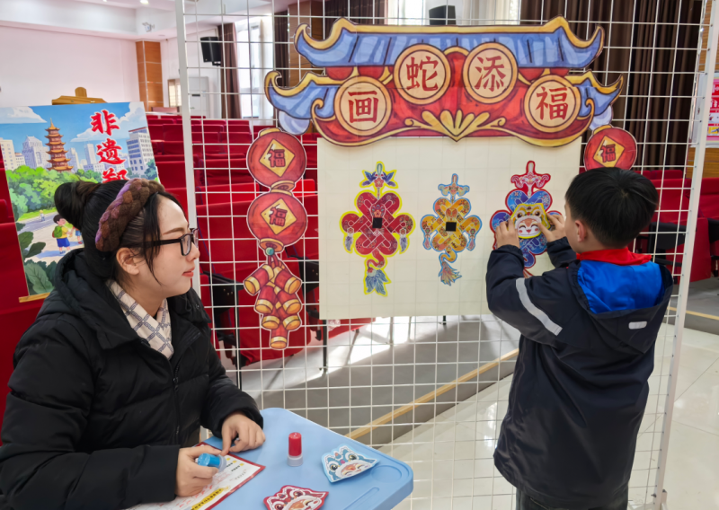 剪紙、布老虎、面塑、木版年畫作為國家非物質(zhì)文化遺產(chǎn)和傳統(tǒng)民間藝術(shù),有著悠久的歷史,一年級(jí)語文學(xué)科集思廣益、將非遺文化與語文學(xué)科的字詞積累、美文誦讀、經(jīng)典背誦、口語交際等內(nèi)容巧妙結(jié)合,突出學(xué)科特點(diǎn),強(qiáng)化知識(shí)運(yùn)用,讓學(xué)生收獲知識(shí)的同時(shí),獲得自我價(jià)值的認(rèn)同感。二年級(jí)美術(shù)學(xué)科以“畫蛇添福·春節(jié)中國結(jié)”為主題,設(shè)計(jì)“三原色的奧秘”“蛇寶喜迎新春”,考驗(yàn)孩子們的構(gòu)圖技巧,鍛煉動(dòng)手實(shí)踐能力。