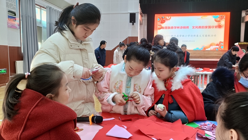 翰墨飄香學林添錦繡,文風雅韻家國盡繁榮。臘月二十三,小年已至,新安縣學林小學明道廳里一片熱鬧非凡的景象。師生與家長們齊聚一堂,共同參與迎新春義寫春聯(lián)活動,為即將到來的春節(jié)增添了濃濃的年味。