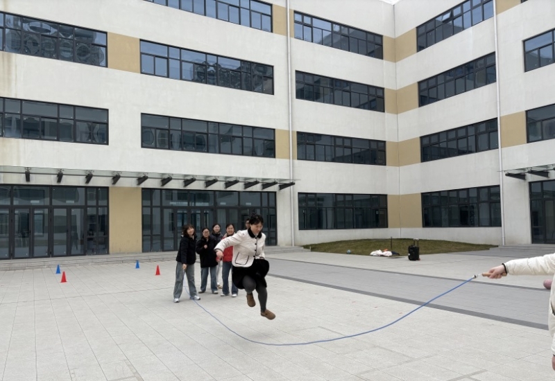 “一圈到底”的賽場上,氣氛緊張又熱烈,這個項目考驗團隊成員的身體協(xié)調(diào)性與默契程度。運球接力跑的場地上,教職工們正在認真商討戰(zhàn)術(shù)、排兵布陣。跳大繩的場地上,加油聲此起彼伏。大家你追我趕,團結(jié)協(xié)作,全力以赴。