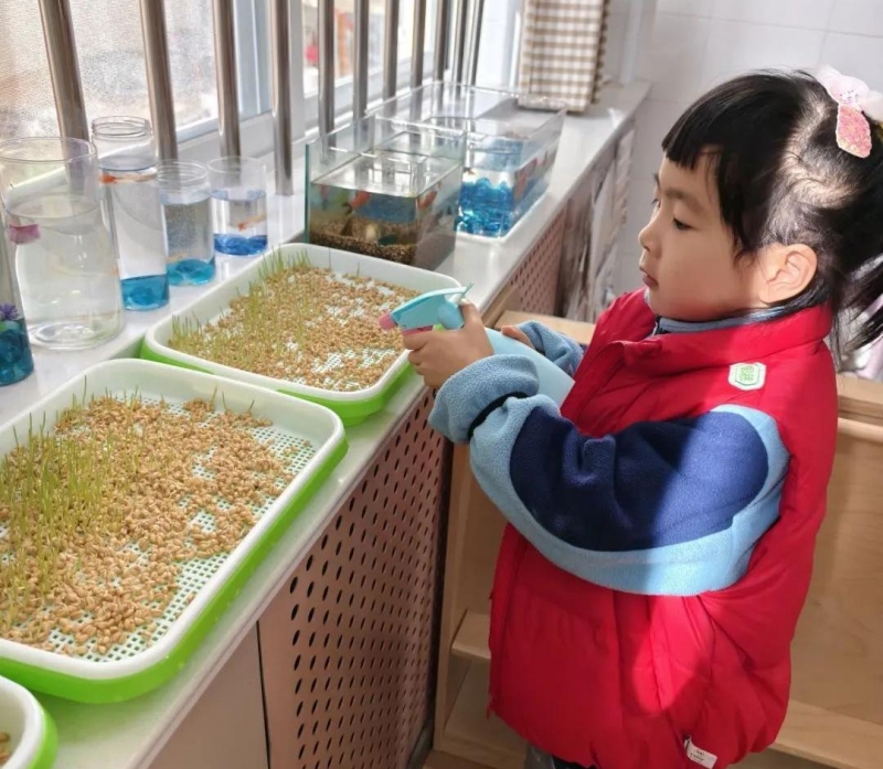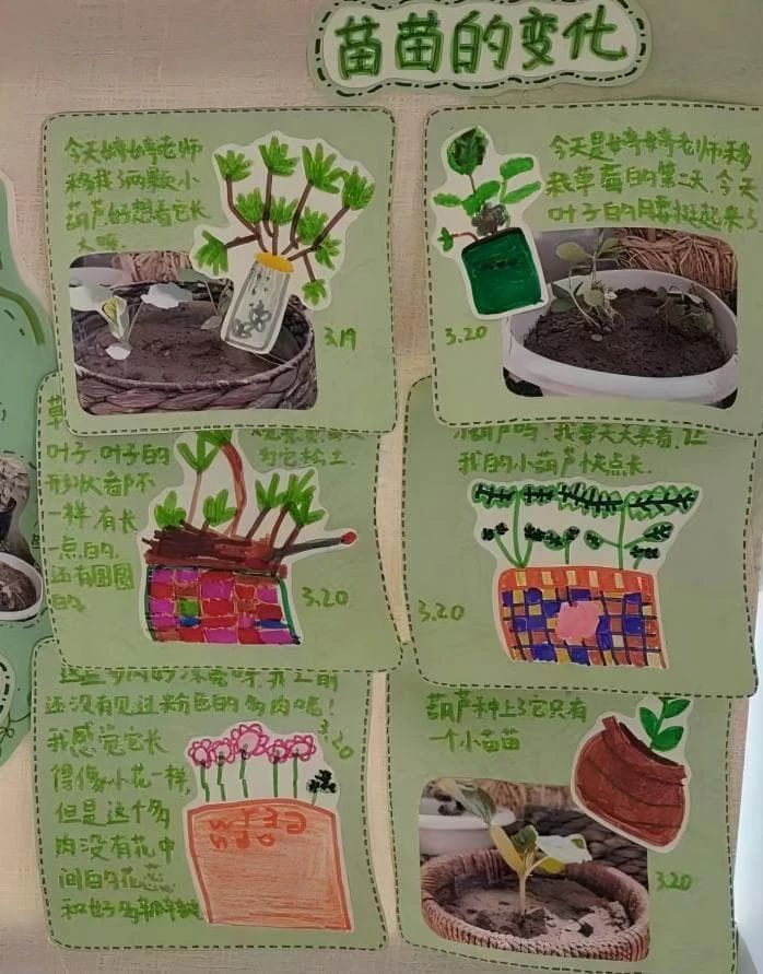 在植物養(yǎng)護環(huán)節(jié),教師與孩子們積極討論,共同制定了詳細的植物養(yǎng)護計劃:一是澆水小任務。孩子們分組,輪流負責給植物澆水。依據不同植物的需性,確定澆水頻率與水量。二是記錄變化。孩子們用畫畫、簡單文字記錄植物的生長變化,如發(fā)芽、長葉、開花……
