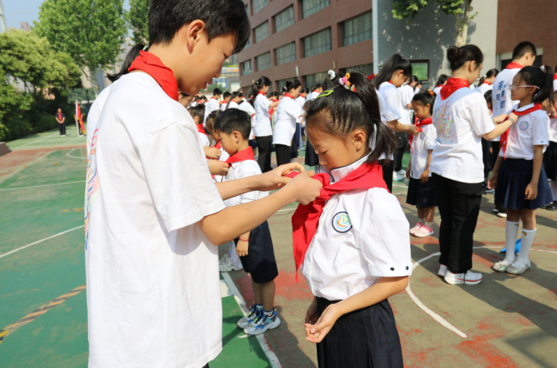 5月16日上午,鄭州市金水區(qū)鳳凰雙語小學(xué)舉行“黨旗引領(lǐng)我成長,今天我入隊”一年級分批入隊儀式。活動以分批入隊為契機,引導(dǎo)新隊員扣好人生第一粒扣子,在黨旗的指引下茁壯成長。