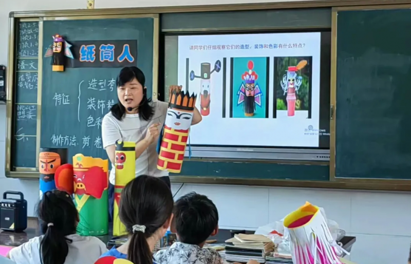 美術(shù)課上,工作室主持人尚海娟在《紙筒人》一課中,巧妙利用《西游記》中師徒四人(紙筒人)的形象導(dǎo)入新課,激發(fā)學(xué)生的創(chuàng)作興趣。通過示范制作步驟、鼓勵個性化設(shè)計,學(xué)生充分發(fā)揮想象力,用卡紙、彩紙等材料為紙筒賦予獨特“生命”。一件件充滿童趣與創(chuàng)意的作品誕生,展現(xiàn)出學(xué)生們對美的獨特理解與追求。
