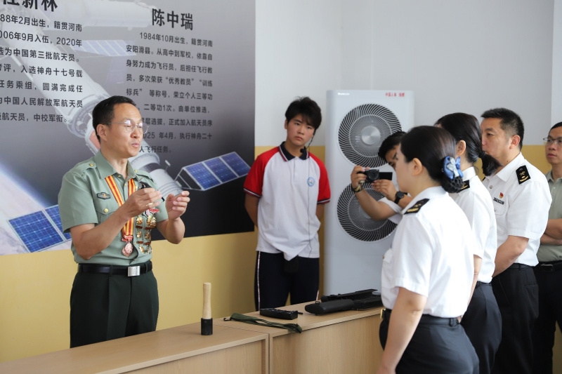在現(xiàn)代國(guó)防區(qū),學(xué)生講解河南籍航天員事跡,戰(zhàn)斗功臣講解槍械知識(shí)、規(guī)范演示輕武器分解與組合;在國(guó)門(mén)生物安全區(qū),師生通過(guò)光學(xué)顯微鏡做微生物觀(guān)察。