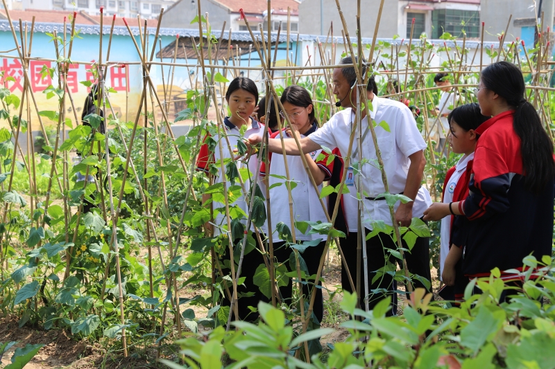 學(xué)校還開(kāi)辟出“我在校園有畝田”的勞動(dòng)教育實(shí)踐基地,全國(guó)勞動(dòng)模范、民權(quán)縣野崗鎮(zhèn)叁收家庭農(nóng)場(chǎng)育苗技術(shù)員李玉姣大力支持,既提供種苗,又手把手地做種植技術(shù)指導(dǎo),創(chuàng)造出“土地+科技+文化”三位一體的實(shí)踐平臺(tái),讓孩子們“手沾泥土,心系自然,快樂(lè)學(xué)習(xí)”。