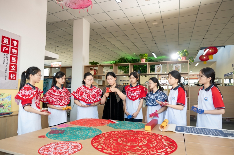 七(2)班學(xué)生田欣蕊、黃藝萱、劉一慧靦腆地告訴記者,以前就很喜歡剪紙,現(xiàn)在能跟著李紅玉老師學(xué)習(xí)特別開(kāi)心,現(xiàn)在已經(jīng)學(xué)會(huì)了剪窗花等簡(jiǎn)單的圖案。“學(xué)習(xí)剪紙,鍛煉專(zhuān)注力,培養(yǎng)耐心,還能更深入地學(xué)習(xí)中華傳統(tǒng)文化,我們也要做文化傳承人。”黃藝萱說(shuō)。