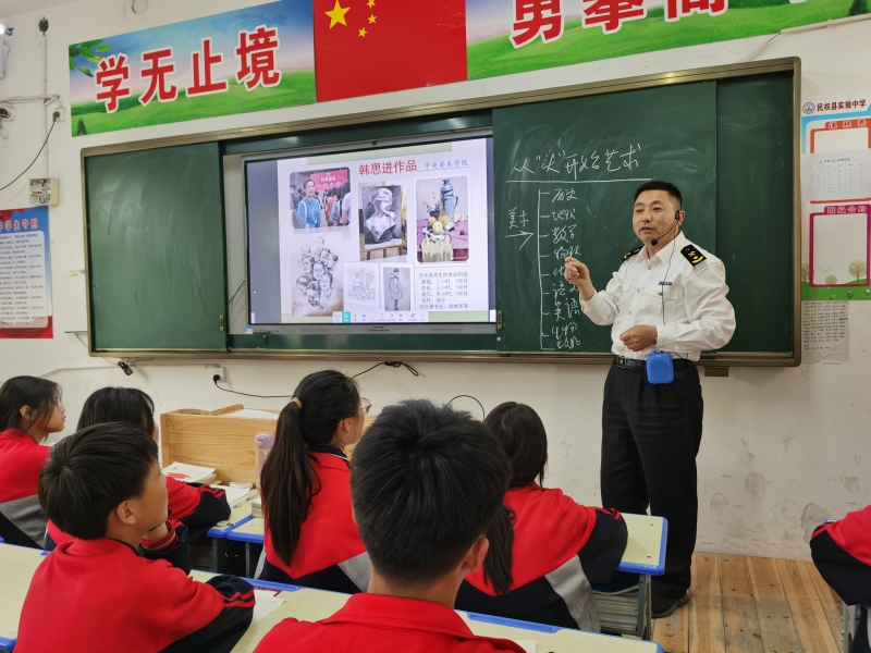 今年2月,韓俊飛老師作為支教教師來(lái)到民權(quán)縣實(shí)驗(yàn)中學(xué)。他深知“孩子們渴望的不只是美育,而是全面成長(zhǎng)的舞臺(tái)”。
