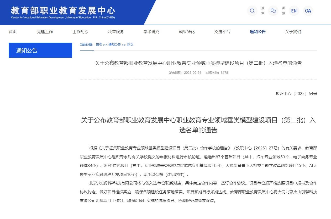 據(jù)悉,本次項(xiàng)目建設(shè)旨在貫徹落實(shí)《教育強(qiáng)國(guó)建設(shè)規(guī)劃綱要(2024—2035年)》精神,推動(dòng)職業(yè)教育與人工智能深度融合、創(chuàng)新教育教學(xué)模式。經(jīng)單位申報(bào)、資格審查、網(wǎng)絡(luò)評(píng)審、會(huì)議評(píng)審、專(zhuān)項(xiàng)審核等多環(huán)節(jié)嚴(yán)格遴選,教育部職業(yè)教育發(fā)展中心最終確定87個(gè)基礎(chǔ)項(xiàng)目(含汽車(chē)專(zhuān)業(yè)領(lǐng)域53個(gè)、電子商務(wù)專(zhuān)業(yè)領(lǐng)域34個(gè))、30個(gè)特色項(xiàng)目(含專(zhuān)業(yè)領(lǐng)域垂類(lèi)模型與智能體應(yīng)用精調(diào)項(xiàng)目5個(gè)、大模型背景下人機(jī)交互教學(xué)改革創(chuàng)新項(xiàng)目15個(gè)、AI大模型專(zhuān)業(yè)實(shí)踐課程開(kāi)發(fā)項(xiàng)目10個(gè))。