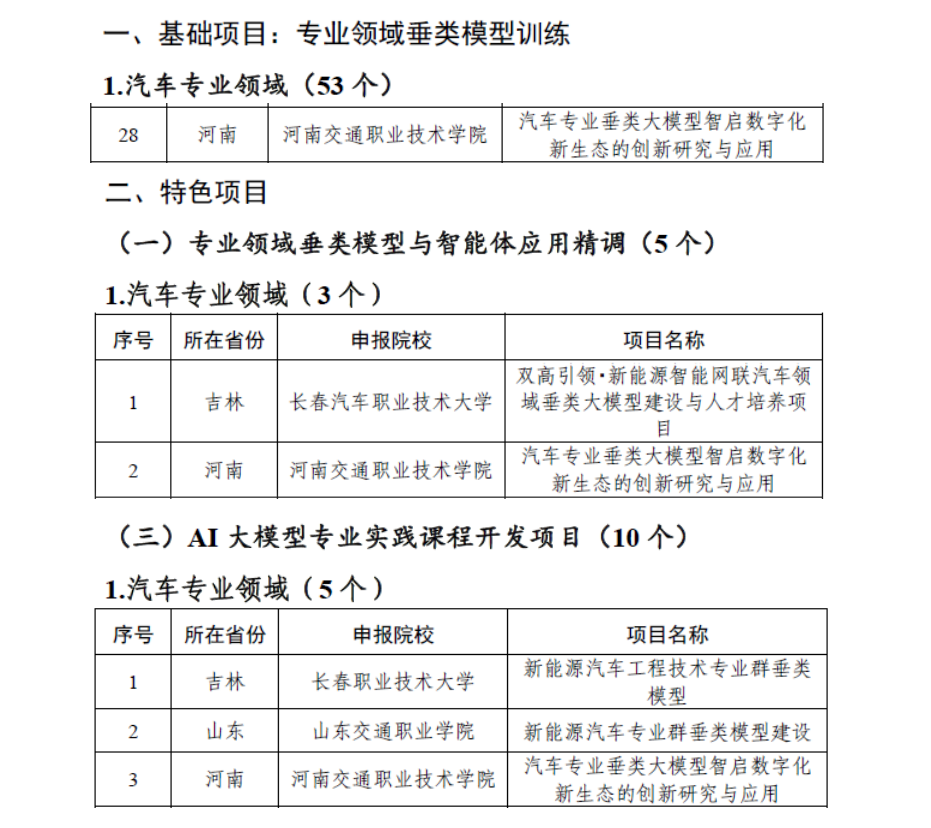 9月24日,教育部職業(yè)教育發(fā)展中心發(fā)布《關(guān)于公布教育部職業(yè)教育發(fā)展中心職業(yè)教育專(zhuān)業(yè)領(lǐng)域垂類(lèi)模型建設(shè)項(xiàng)目(第二批)入選名單的通告》(教職中心〔2025〕64號(hào)),河南交通職業(yè)技術(shù)學(xué)院憑借扎實(shí)的數(shù)字化建設(shè)基礎(chǔ)與創(chuàng)新實(shí)踐方案,成功獲立 3個(gè)項(xiàng)目,涵蓋基礎(chǔ)項(xiàng)目與特色項(xiàng)目?jī)纱箢?lèi)別,在汽車(chē)專(zhuān)業(yè)領(lǐng)域人工智能與職業(yè)教育融合發(fā)展中彰顯河南職教力量。